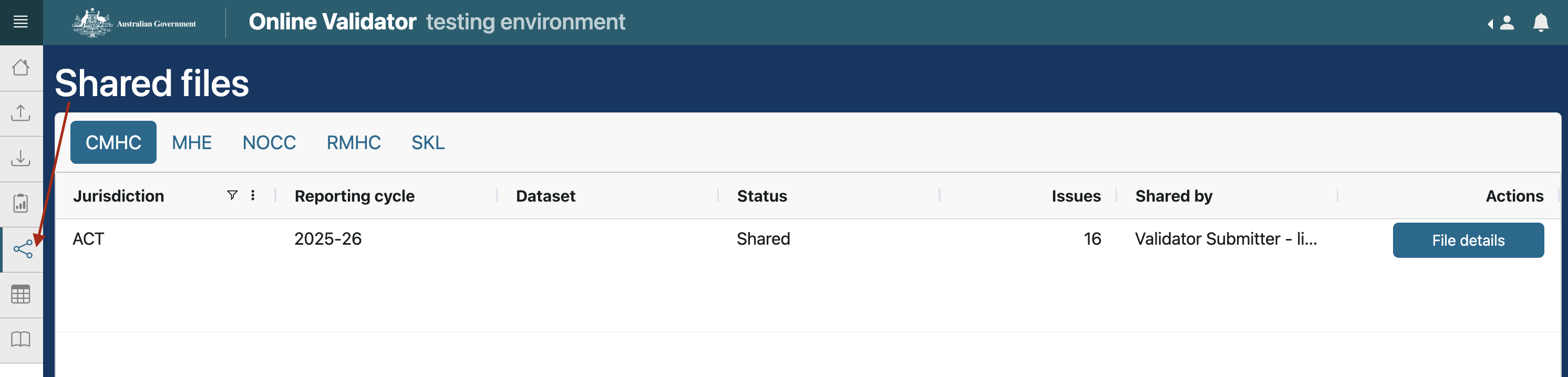 A Submitter may choose to share access to an uploaded file, that they own, before they propose it for review by a Reviewer or Acceptor. Recipients of shared files must be registered in the system and be from the Commonwealth (the department or AIHW).